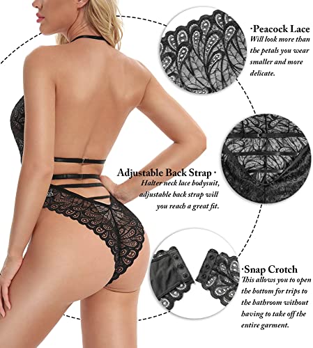 Aranmei Sexy Vrouwen Bodysuit Eéndelige Lingerie Opengewerkte Kant Diepe V-Hals Blote Rug Lingerie Set