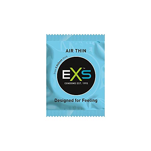 Exs air thin behoren tot de dunste kwaliteit latex condooms ter wereld, Ze hebben een comfortabele 56mm pasvorm, hebben geen latex geur en het gevoel dat je geen condoom draagt. Krachtig getest volgens de Europese normen en door het Britse normalisatie-instituut (BSI) is dit product extreem dun en heeft het de kracht van dikkere reguliere latexcondooms.