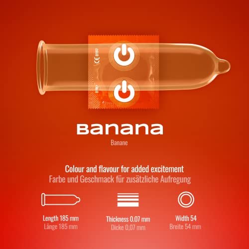 Specification: On) Fruit & Color, 3 gekleurde condooms met smaak (aardbei, banaan, chocolade)